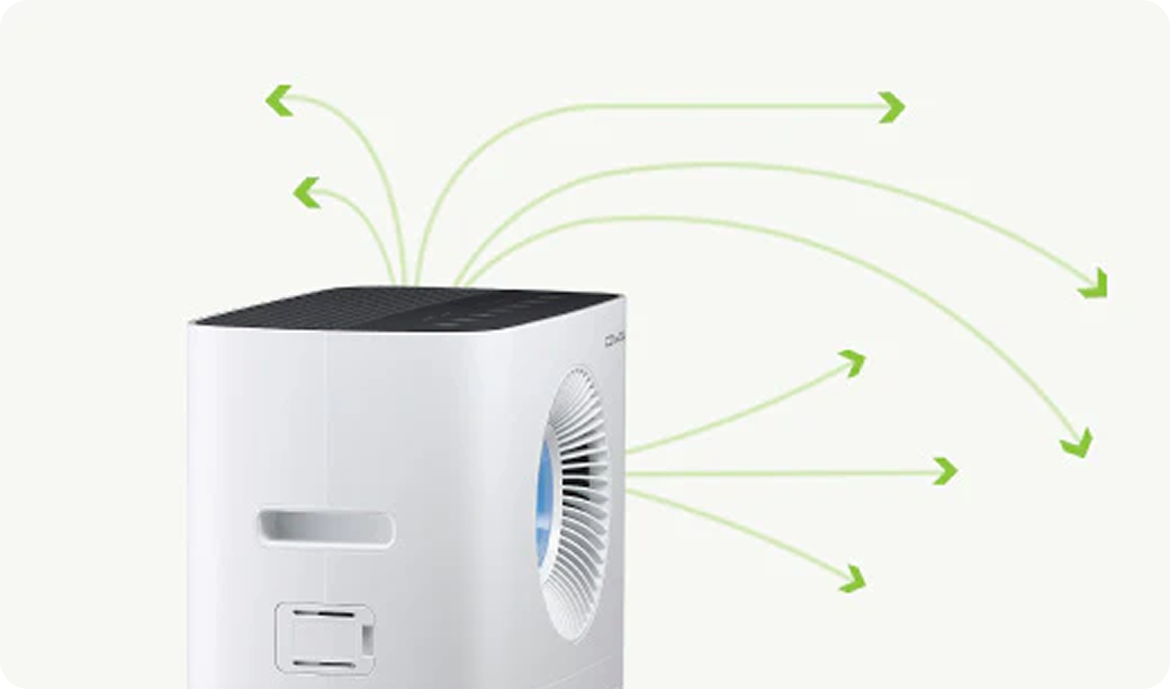 REMOVES 99.999% OF FINE DUST AND 99.9% OF AIRBORNE VIRUSES